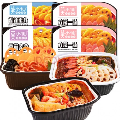 莫小仙 自热小火锅4盒装 六菜一肠250*2盒+香辣素食240g*1盒+番茄素食300g*1盒 方便速食懒人火锅